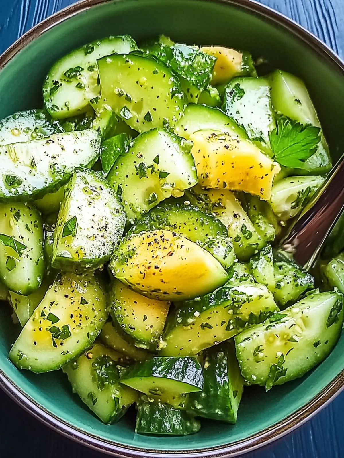 Freshness at Its Best: The Avocado Cucumber Salad features crisp ingredients that burst with flavor, perfect for hot summer days.