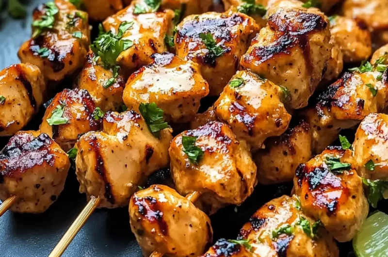 Grill the Skewers: Preheat your grill to medium-high heat and place the skewers on the grill. Cook for about 8-10 minutes, flipping halfway through, until the chicken is cooked through and reaches an internal temperature of 165°F (74°C).