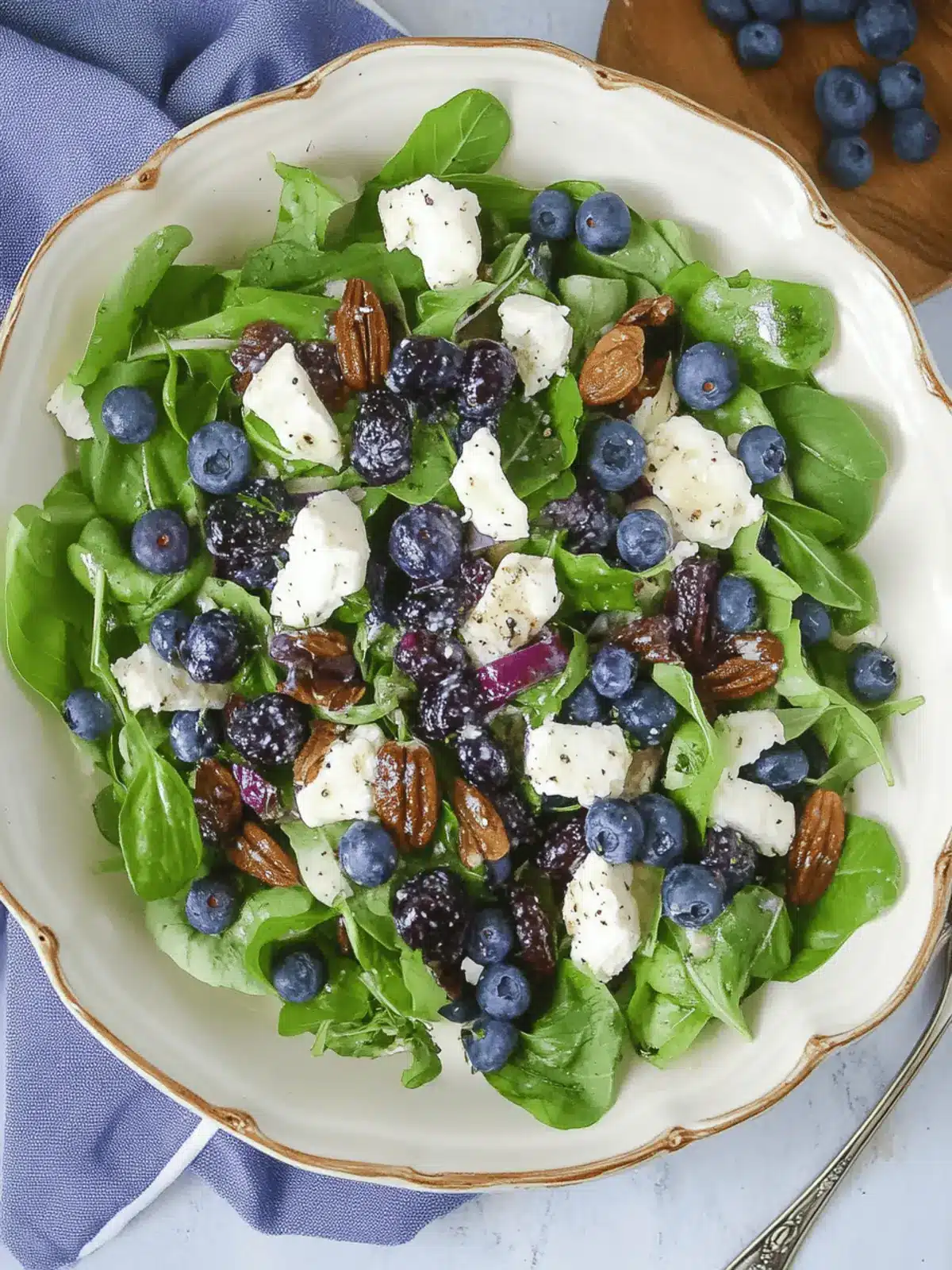 For the best texture and flavor, I recommend using fresh blueberries. Look for ones that are plump, firm, and have a deep blue color without any dark spots. If fresh is unavailable, frozen blueberries can work in a pinch, but they may change the salad’s texture once thawed.