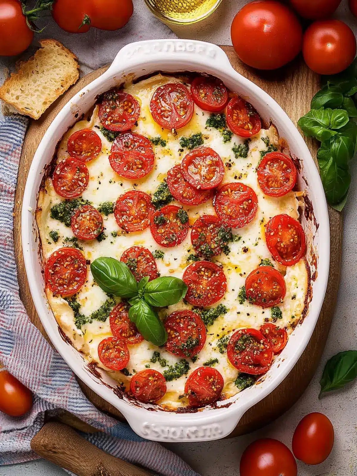Serving Fresh: For the best flavor and texture, serve freshly baked Caprese Dip. If reheating, consider adding a splash of fresh pesto on top for an extra burst of flavor!
