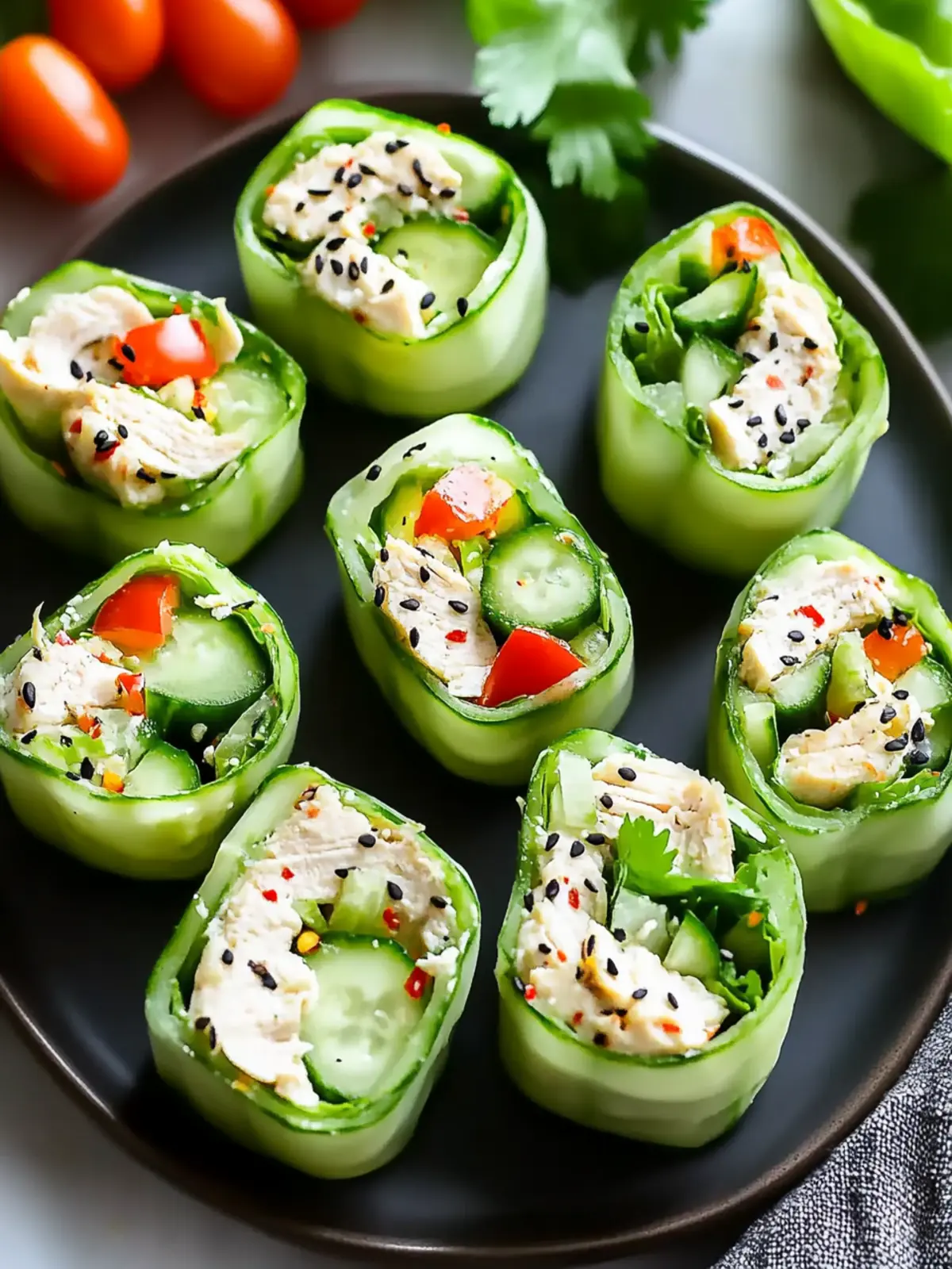 Imagine the burst of flavor from seasoned shredded chicken mingling with creamy avocado and vibrant cilantro, all wrapped in a crisp cucumber slice. Not only is this dish a feast for the eyes, but it’s also gluten-free and low-carb, making it a clean, guilt-free lunch option. Best of all, these rolls are super easy to prepare, whether you’re in the mood for meal prep or simply want to impress your friends at a gathering. Let’s dive into this refreshing recipe that promises to liven up your lunchtime routine!
