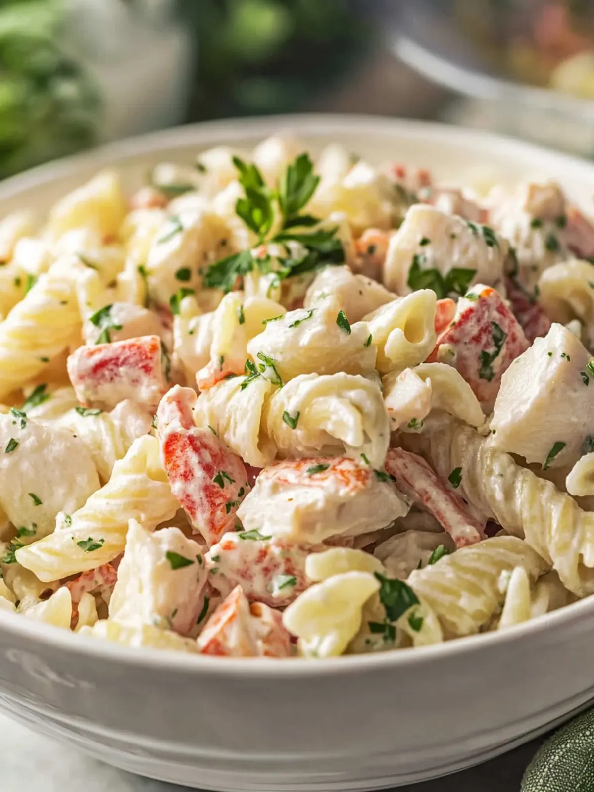 Customize Ingredients: Don’t hesitate to swap or add ingredients based on your preferences. Try diced avocado or corn for different textures in your Crab Pasta Salad.