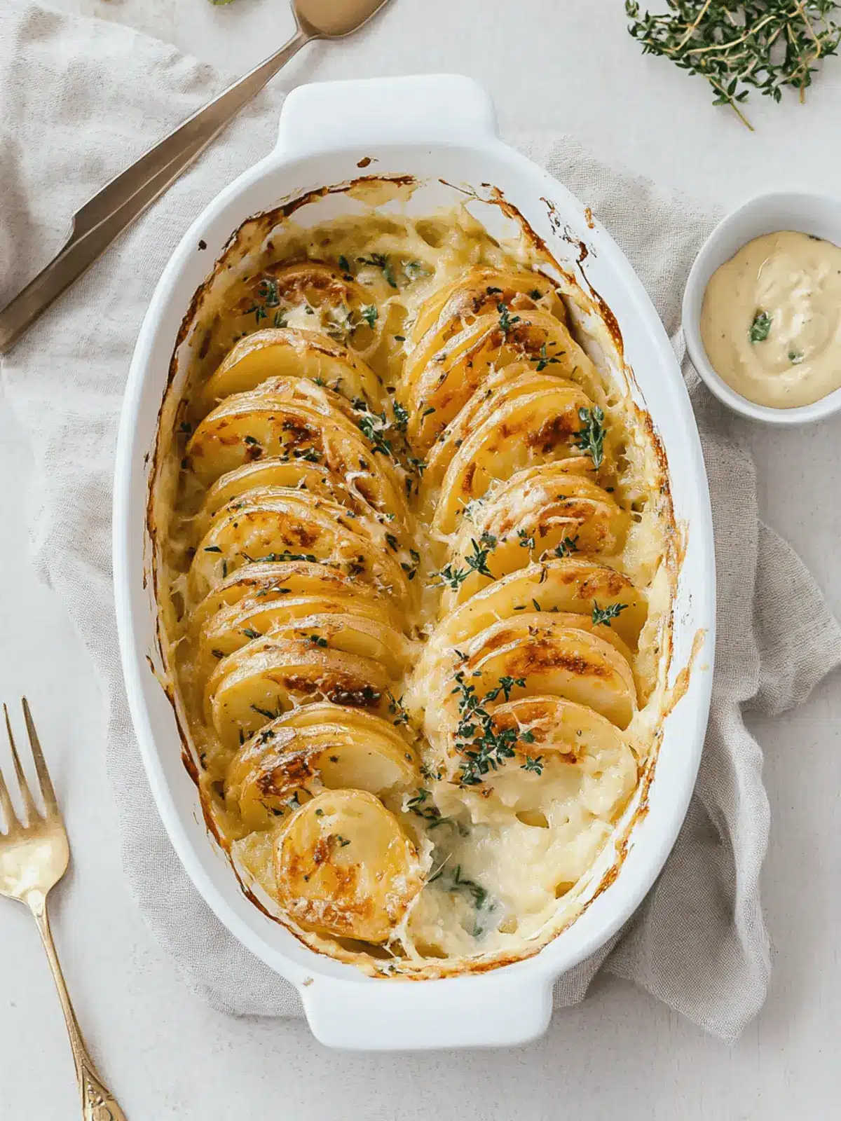 Savory Layers: Mix in cooked bacon or ham slices between potato layers for a satisfying, savory punch that elevates comfort food.