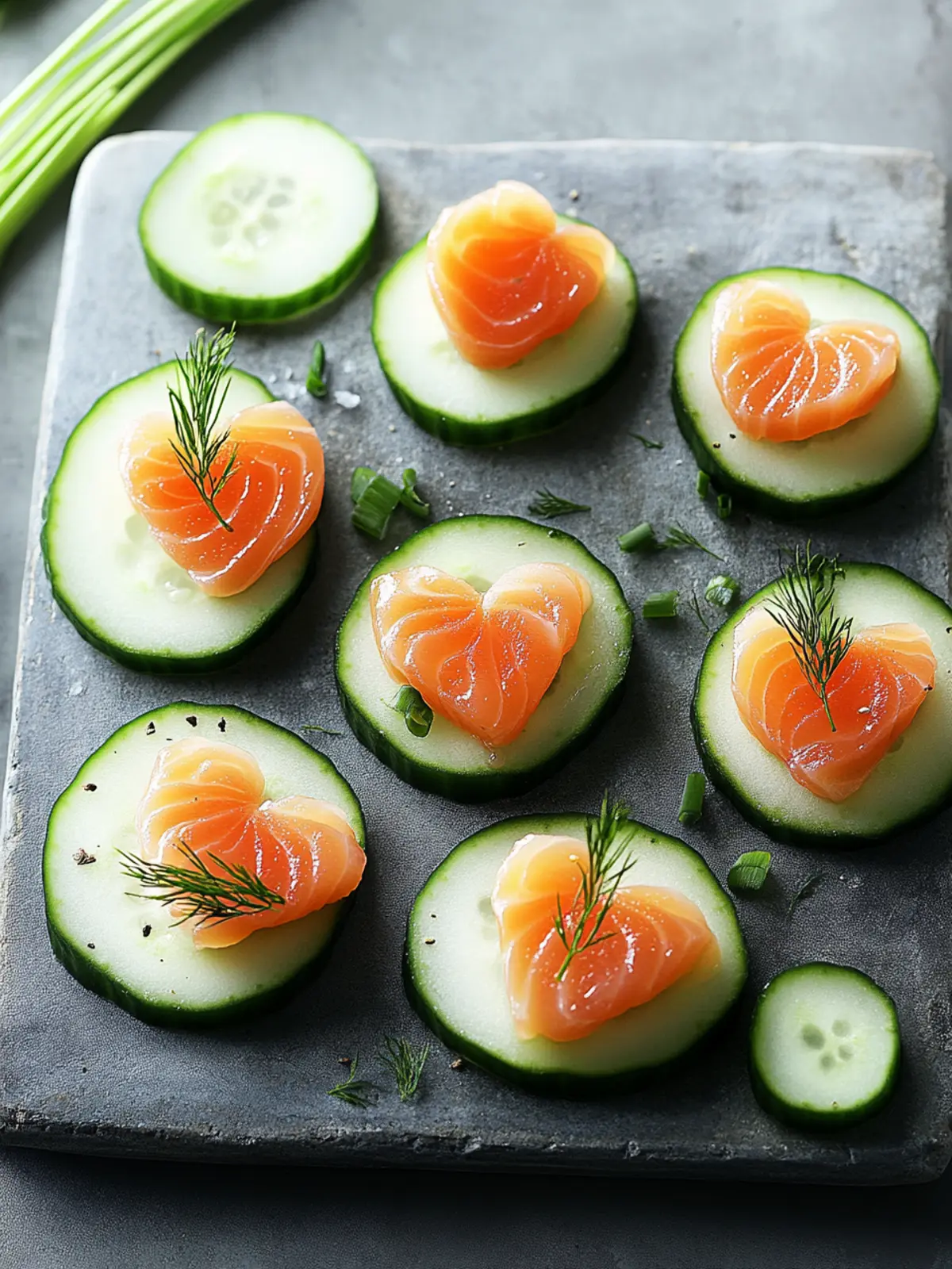 Choose the Right Cucumber: Select firm, fresh cucumbers with minimal seeds for the best crunch and flavor. This enhances your Cucumber Slices with Smoked Salmon Hearts.