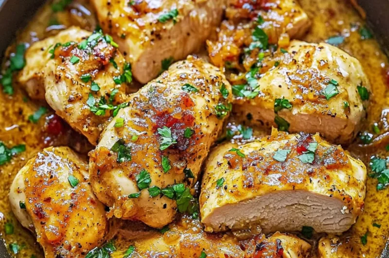 Combine: Return the chicken to the skillet, spooning the sauce over to coat it well. Garnish with fresh parsley and serve immediately for a beautiful presentation!