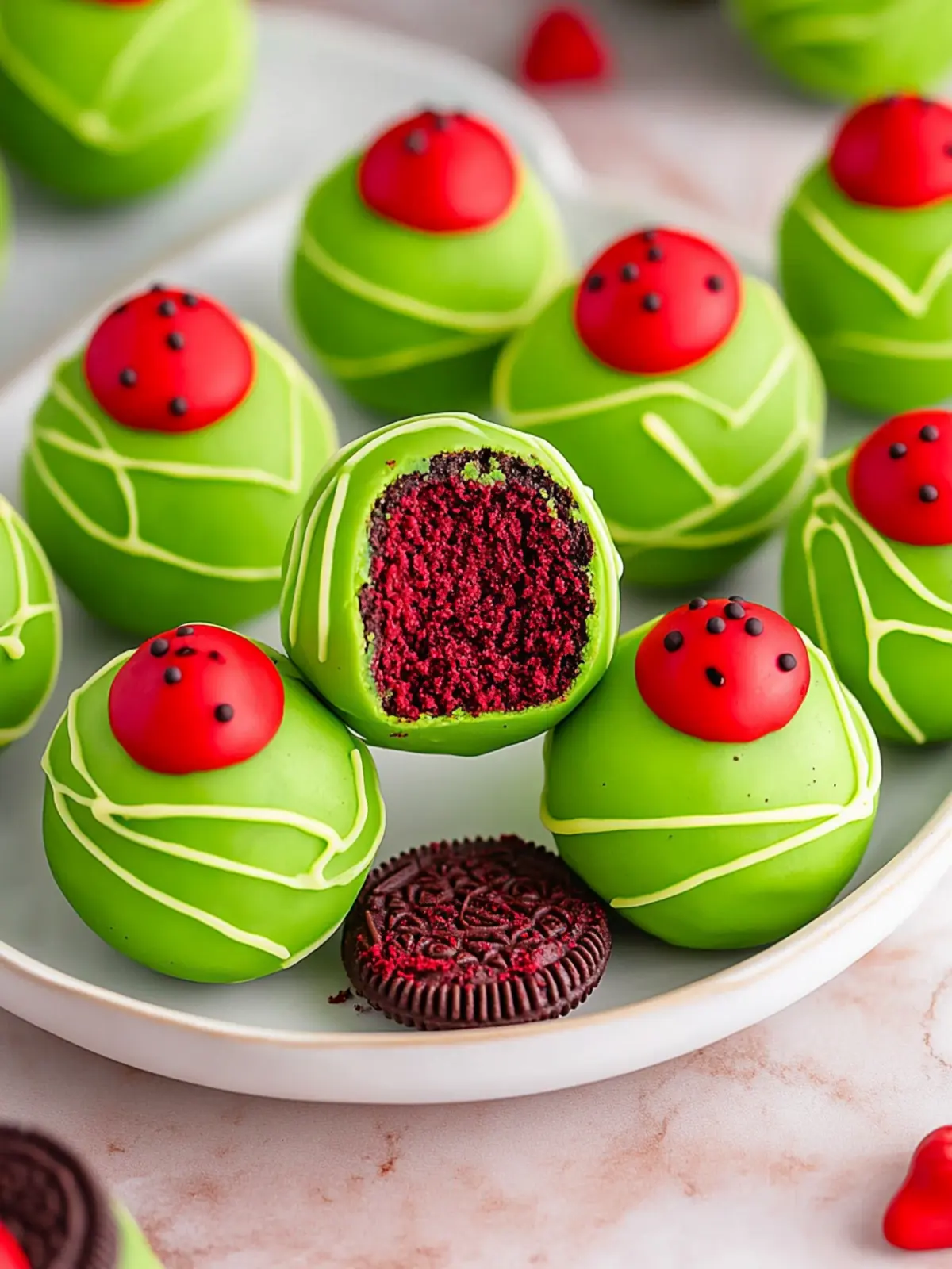 Festive Grinch Oreo Balls with Decadent Red Velvet Filling