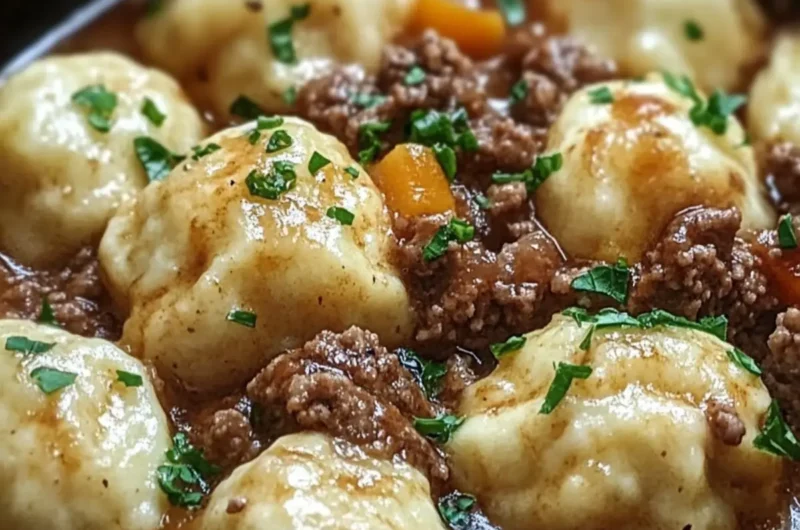 These Ground Beef and Dumplings are a lifesaver for busy weeknights! You can prepare the beef mixture up to 3 days in advance by following the steps for browning the beef and simmering it with your seasonings; simply let it cool and store it in an airtight container in the refrigerator. The dumpling dough can also be made 24 hours ahead, and it’s best kept wrapped tightly in plastic wrap to prevent drying out. When ready to serve, just reheat the beef mixture on the stove until hot, then drop the dumpling dough onto it and steam as directed. This way, you’ll enjoy a comforting, home-cooked meal with minimal effort!