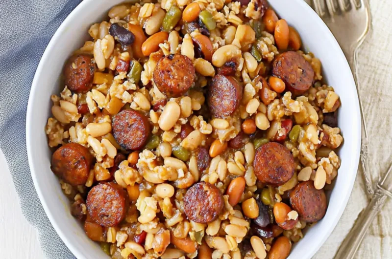 Imagine the rich aroma of savory sausage mingling with creamy black-eyed peas, tomatoes, and a medley of Cajun spices wafting through your home. The best part? This meal practically cooks itself in the slow cooker, making it the perfect fuss-free option for busy weeknights or any gathering.