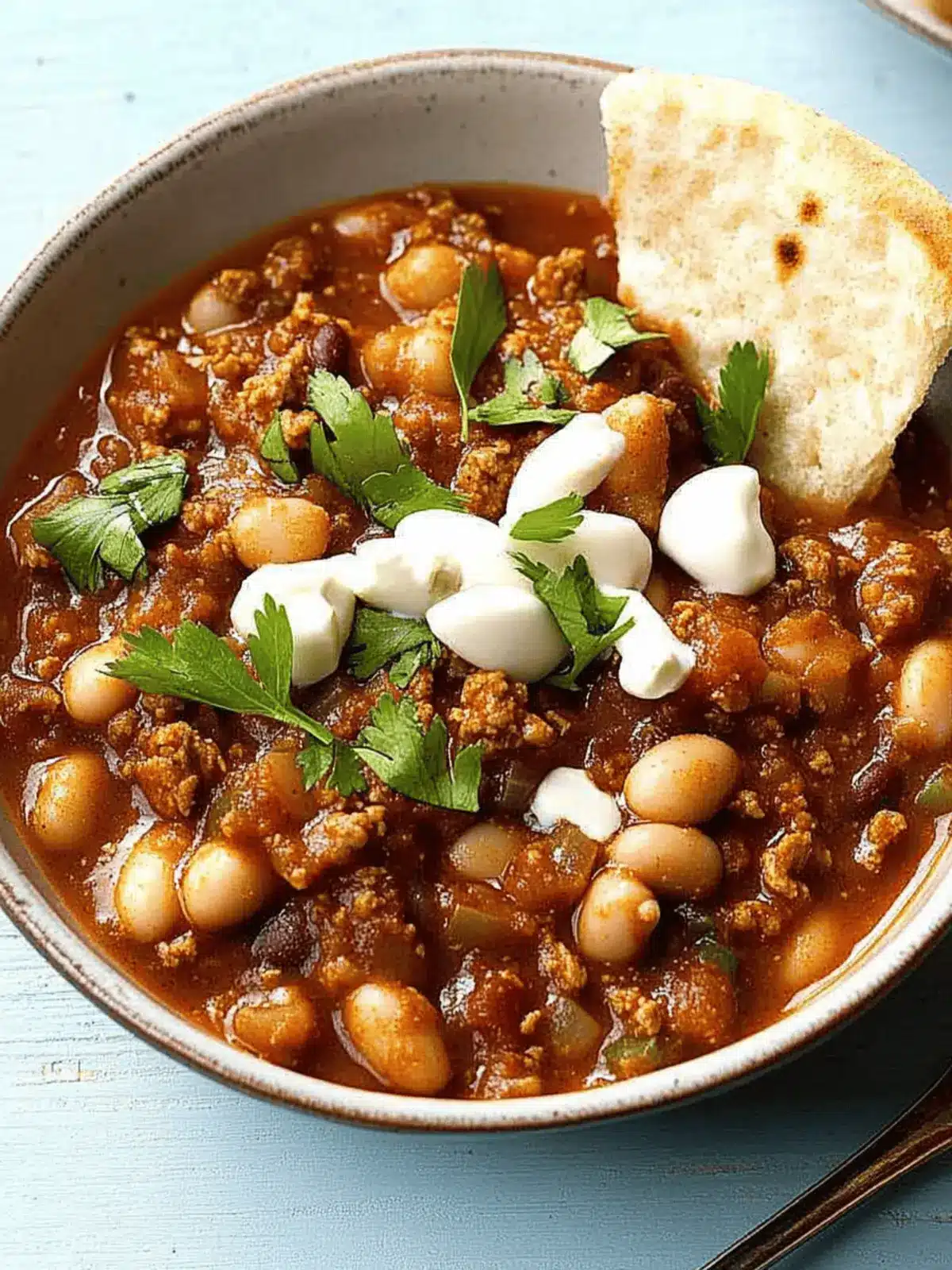 - Serving Style: Garnishing your chili with fresh parsley, crumbled goat cheese, and sliced almonds not only adds flavor but also a delightful texture that enhances every bite.