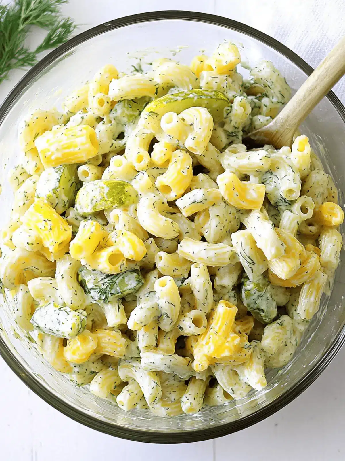No worries! If you find that the salad is too dry after it’s chilled, simply add a splash of dill pickle juice or a bit more mayonnaise to moisten it to your liking. Mix gently to avoid breaking up the pasta and other ingredients while maintaining that delightful creaminess.