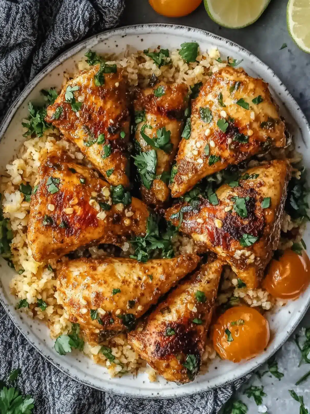 Herbed Couscous: Fluffy couscous seasoned with fresh herbs and lemon zest harmonizes the warm spices, adding a fluffy texture that complements the crunchy exterior.