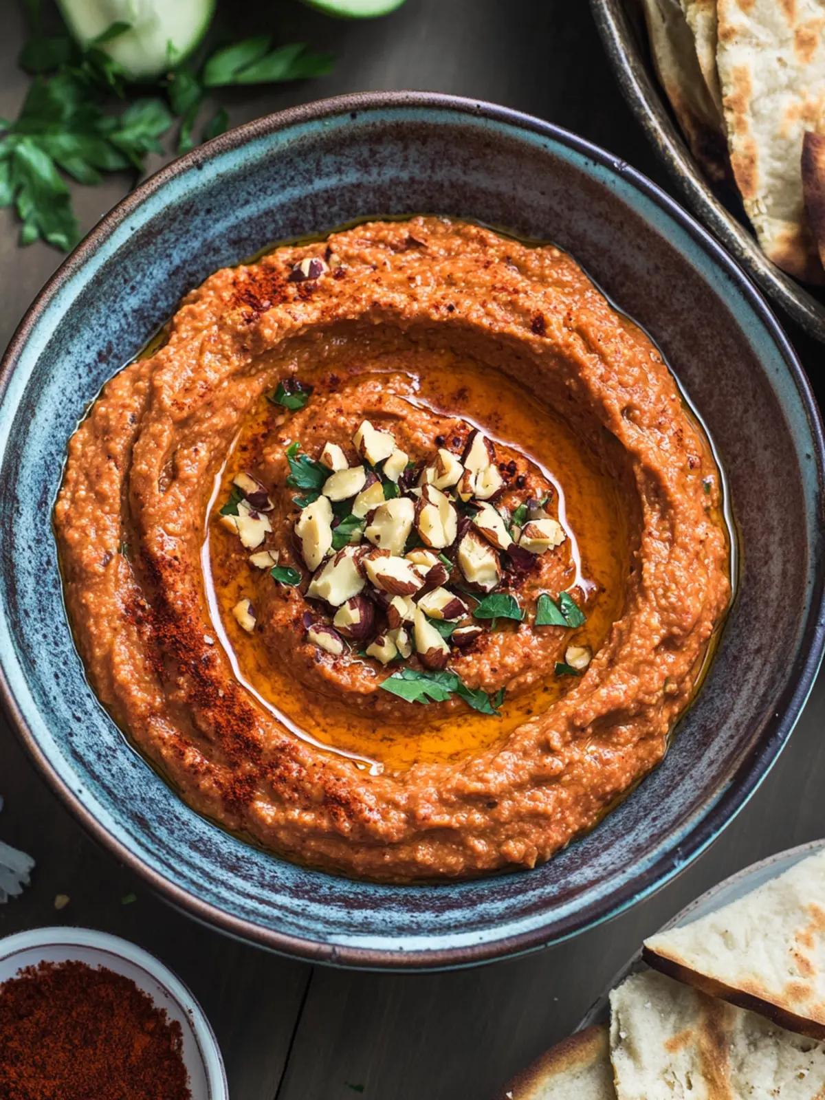 Garnish Spectacle: Don’t skimp on the garnishes! They not only enhance the dish with beautiful colors but also add layers of flavor to your Muhammara.