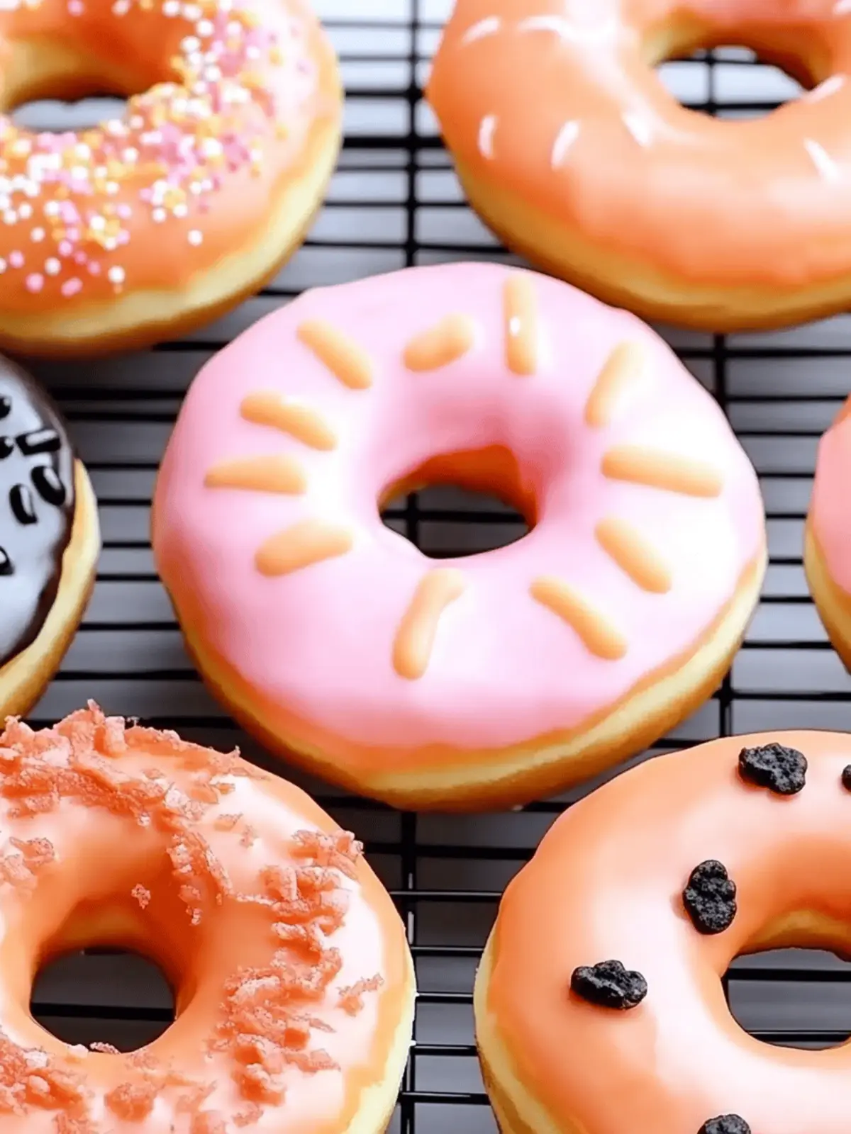 Prepare Glaze: Once cooled, make the glaze by whisking the powdered sugar and milk in a bowl until smooth. Add food coloring gradually to create your desired pastel shades. Drizzle the glaze over the cooled donuts and finish with sprinkles for that festive touch.