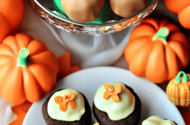 - Pipe Decorations: Using green chocolate, pipe leaves and vines around each pumpkin for a festive touch.