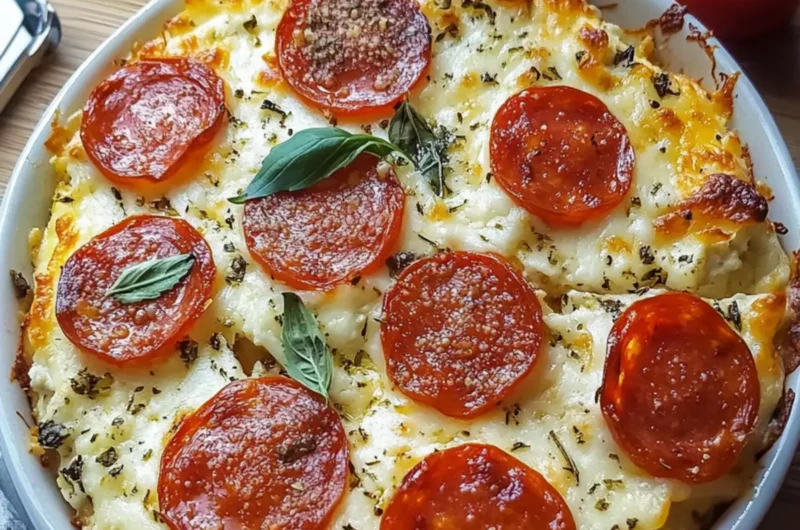 Zesty Tomato Layer: Spread a thin layer of marinara sauce at the bottom of the baking dish before pouring in the cheese mixture for an extra burst of classic pizza flavor.