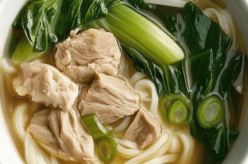 Nourishing Flavors: Enjoy a rich, savory broth filled with tender pork and vibrant bok choy that satisfies both hunger and soul.