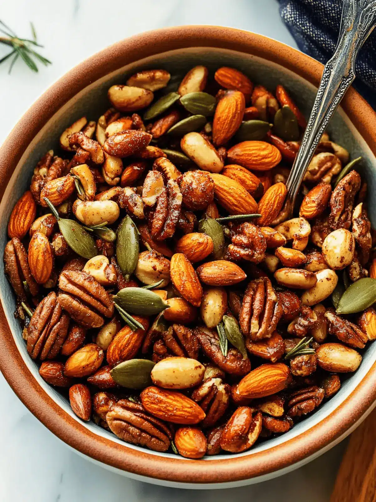 Herb Infusion: Replace rosemary with thyme or oregano for an exciting herbal note. Each herb brings its unique charm to your nut mix.