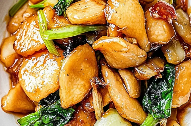 Delicious Stir Fried Shanghai Rice Cakes with Chicken Delight