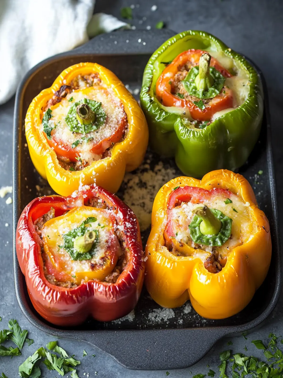• Bell Peppers (any color) – The vibrant vessel for the filling; choose firm peppers for the best shape and flavor.