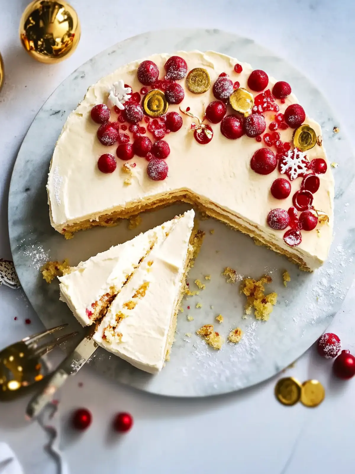 Festive flair: Its snowy white appearance and colorful toppings instantly elevate your holiday table, making it a showstopper.